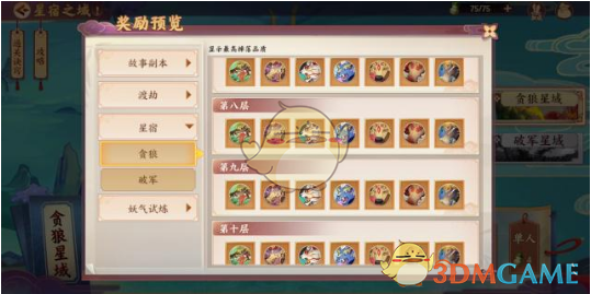 小伙伴们想要获取什么星宿,就可以选择相应的星域层进行挑战了!