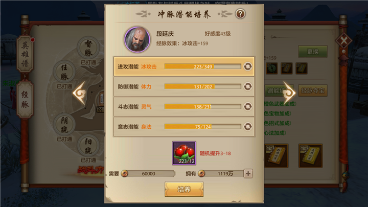 武当潜能果应该优先用来提升进攻潜能与斗志潜能,至少提升至蓝紫色,再来考虑其他潜能。