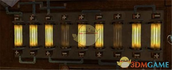 接通电闸后下楼,找到房间中间的箱子,把开关全部上拨,然后按下中间的按钮
